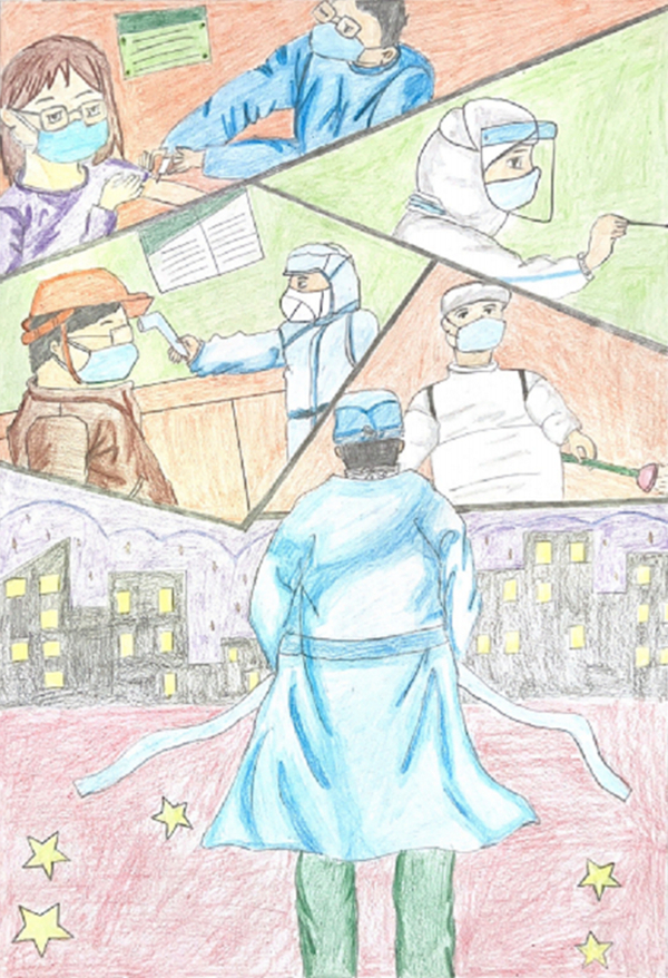 活动中学生踊跃参与,积极创作,征集的作品形式多样、内容丰富、创意新颖。他们用一颗善于发现爱的眼睛描绘了身边防疫工作人员的点点滴滴,再现了抗疫期间那一幕幕感人至深的画面,用真情实感歌颂了奋战在防控一线的医务工作者、志愿者,表达了众志成城、守望相助的必胜信念。