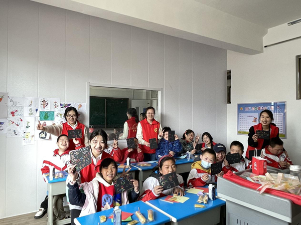 “爱童行”志愿服务队走进滕州市特殊教育中心,为聋哑儿童们带来爱心志愿服务。教室中,志愿者与儿童们一起开展绘画、折纸等活动。他们用手中的画笔,一笔一画描绘出英雄的模样,表达自己对雷锋叔叔的敬爱之情。期间,志愿者们也通过文字交流的方式,在折纸内为孩子们书写下了祝福。