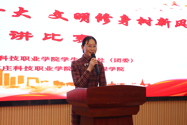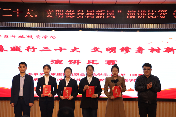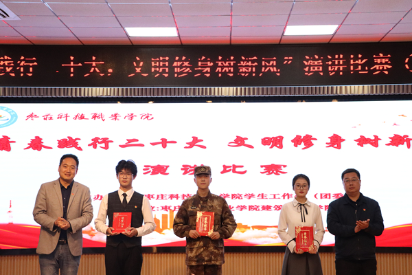 弘扬时代精神,争做文明先锋。为深入学习宣传贯彻党的二十大精神,提高同学们的校园文明意识,营造良好的校园文化氛围,由枣庄科技职业学院学生工作处(团委)主办、建筑工程学院承办的“青春践行二十大,文明修身树新风”主题演讲比赛于4月13日圆满结束。学生工作处处长、团委书记薛涛,建筑工程学院党总支书记贾佳,学生工作处副处长、团委副书记王斌,建筑工程学院副院长张朋,各二级学院团总支书记及部分辅导员出席本次比赛。