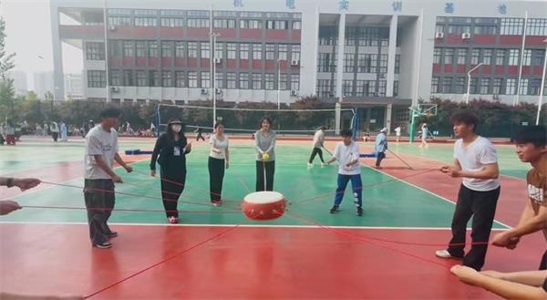 在“心随律动 趣享青春”趣味运动会中,每支参赛队伍齐心协力,为了班级荣誉奋力拼搏,呐喊助威声此起彼伏,极大增强了团队间的信任与沟通。此外,现场还设有“同心击鼓”自由体验区,同学们自由组队,感受团队协作的乐趣。
