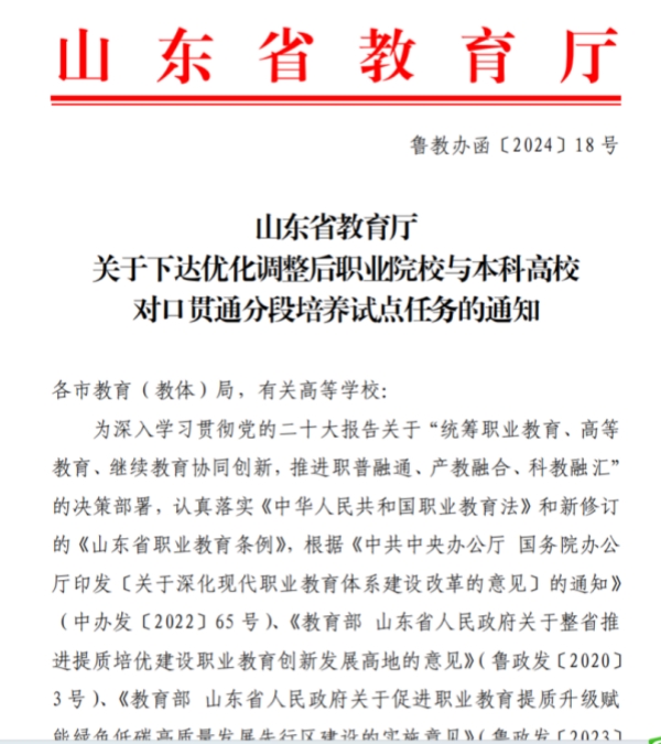 山东省教育厅批准滕州市中等职业教育中心学校“3+4”贯通培养项目