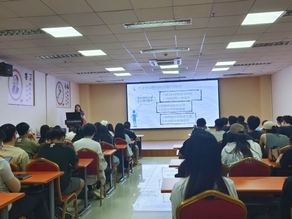 孟朔老师以“跃读青春,心向暖阳”为主题,围绕心理委员的工作职责和角色定位,大学生常见的心理问题:学业压力、人际关系困扰、情感挫折、职业规划迷茫等几个方面,进行了详细的分析和讲解,同时分享了许多实用的危机干预技巧和心理咨询技能。针对学业压力建议同学们制定合理的学习计划,掌握科学的学习方法,学会劳逸结合;在处理人际关系方面,鼓励同学们积极主动沟通,尊重他人差异,学会换位思考;面对情感问题,引导同学们树立正确的恋爱观,理性对待感情挫折;对于职业规划迷茫,指导同学们做好自我认知和职业探索,明确职业目标和方向。讲座在轻松愉快的氛围中进行,孟朔老师以生动的案例、幽默的语言和深刻的见解赢得了在场同学们的一致好评。