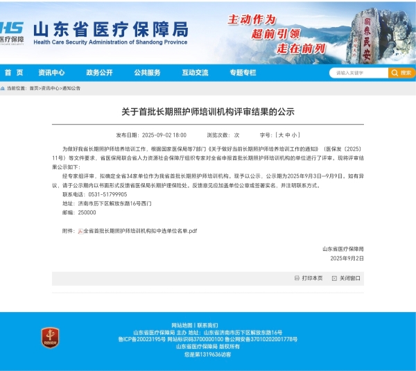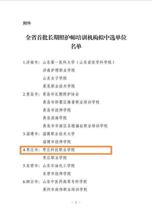 2025年9月,山东省医疗保障局与省人力资源社会保障厅联合公布了首批长期照护师培训机构名单。枣庄科技职业学院凭借深厚的办学积累、优质的教学资源以及精准对接社会需求的定位,成功入选全省34家首批认定单位之一。这一资格不仅代表了省级主管部门对学校职业教育水平的高度认可,也标志着学校在服务山东省健康养老产业发展、培养高素质照护人才方面迈出了关键一步。