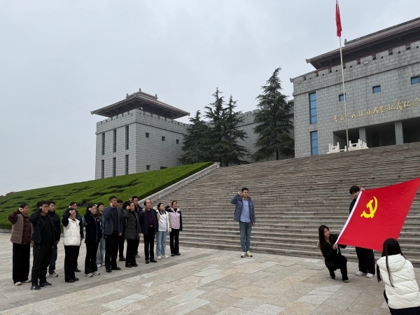 基地广场的英雄纪念碑前,气氛庄严肃穆。党员代表怀着崇敬之心向革命先烈敬献花篮,全体人员肃立默哀,深切缅怀为国家独立、民族解放献出宝贵生命的英雄先辈。随后,全体党员面向党旗,高举右拳,重温入党誓词。铿锵有力的誓言回荡在广场上空,既是对初心使命的庄严回望,更彰显了新时代党员砥砺前行、勇担重任的坚定信念。