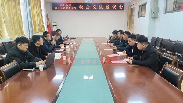 座谈会上,双方共同观看了枣庄科技职业学院宣传片,种法亮一行全面了解了学院建院20周年、办学74年来在专业建设、人才培养、技能竞赛等方面取得的办学成果。韩玉勇对枣矿集团一行表示热烈欢迎,对机电工程学院的专业设置、师资力量、实践教学体系以及服务产业发展情况作了系统介绍,重点展示了学院在高端装备智能制造专业群建设、产教融合、技能竞赛等方面的特色与优势。种法亮详细介绍了枣矿集团的发展布局、产业现状、人才需求和岗位特点,并围绕集团人才需求、招聘标准、薪资情况、实习安排、安全培训、培养路径及“订单班”深度合作建设等与学院展开深入交流。