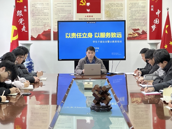 为进一步强化学生会组织建设、提升工作效能,12月29日,建筑工程学院团总支(学生科)在5412合堂举办学生会骨干会员述职评议暨安全警示教育培训会。建筑工程学院副院长张朋、团总支书记(学生科长)刘德海、学生科科员及第十九届学生会骨干成员参会。