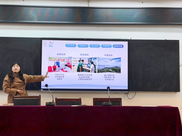 毛静副教授(口腔医学技术教研室主任、山东省技术能手)以“医学技术”赛项银奖项目“上中切牙纳米陶瓷冠修复”为例,系统讲解了项目创新点:通过备牙导板提升操作精准度、采用纳米陶瓷增强临床实用性、运用椅旁3D打印提高修复时效性。她强调“选好题、选好人、勤交流”是备赛关键,并结合返乡青年牙齿修复的真实案例,生动诠释了项目在患者体验、医师效率与基层医疗环境改善三方面的社会价值,尤其展示了AI牙云平台对优质资源下沉的赋能作用。