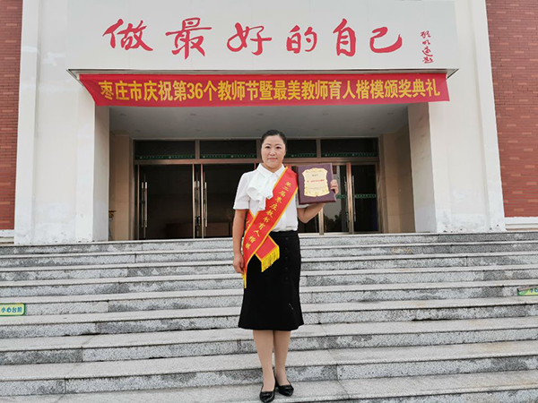 本站讯(通讯员 尹小艳) 9月8日下午,枣庄市庆祝第36个教师节暨最美教师育人楷模颁奖典礼隆重举行,职教中心教师张静荣获“枣庄市第二届教书育人楷模”称号。
