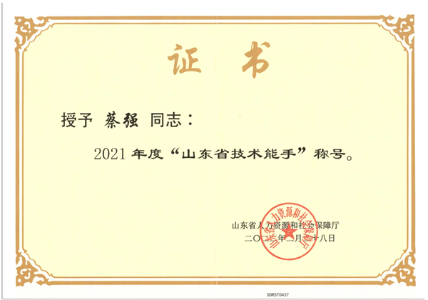近日,山东省人力资源和社会保障厅发布《山东省人力资源和社会保障厅关于公布2021年度“山东省技术能手”名单的通知》,机电工程学院教师蔡强获此殊荣。