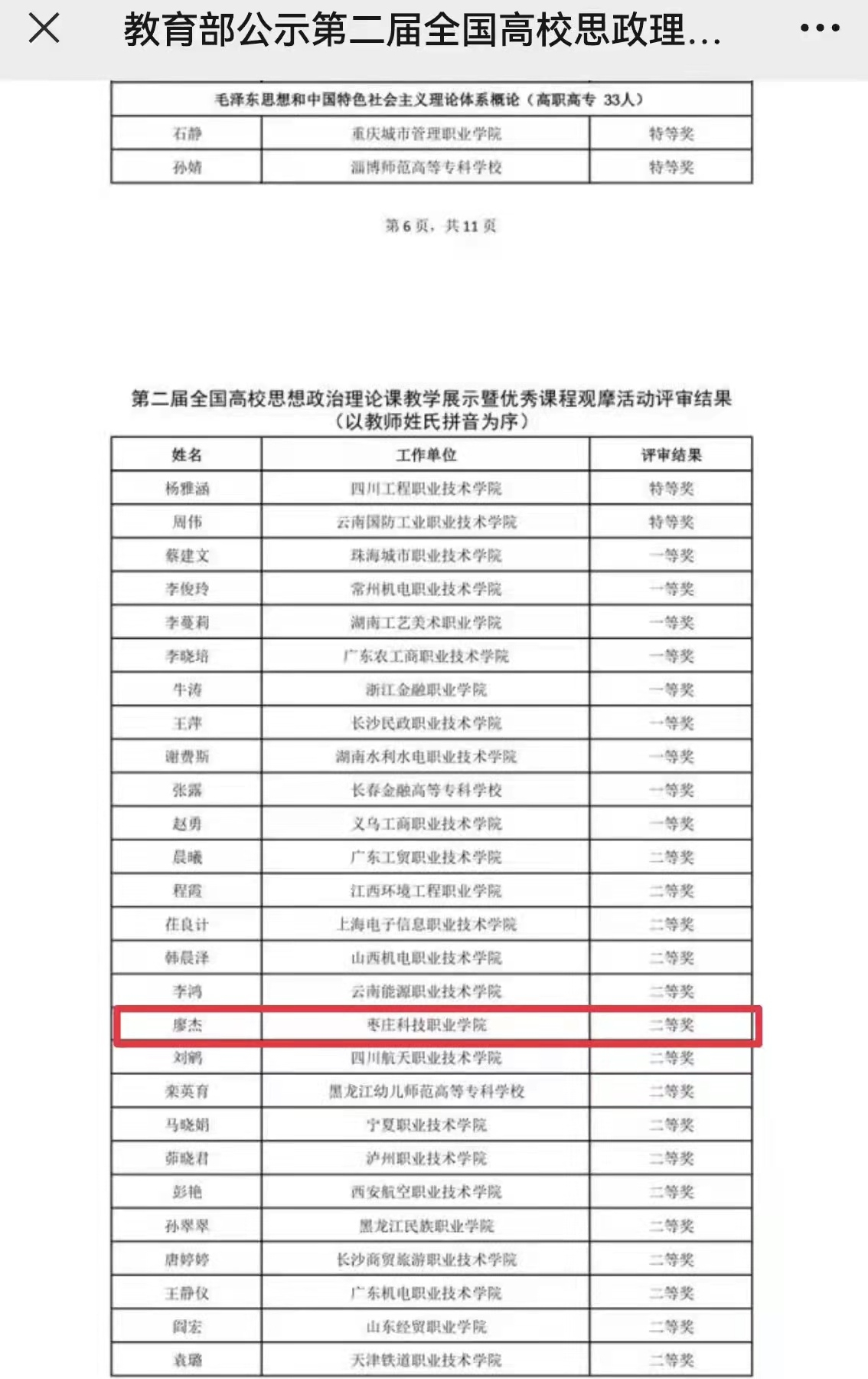 近日,根据《教育部办公厅关于公布第二届全国高校思想政治理论课教学展示活动评选结果的通知》,马克思主义学院廖杰老师喜获第二届全国高校思政课教学展示活动二等奖。这是学院喜获国字号荣誉的再次突破。