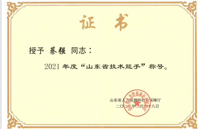 近日,山东省人力资源和社会保障厅发布《山东省人力资源和社会保障厅关于公布2021年度“山东省技术能手”名单的通知》,机电工程学院教师蔡强获此殊荣。