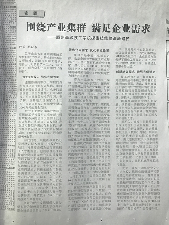高技部(培训学院)在中国劳动保障报发表文章