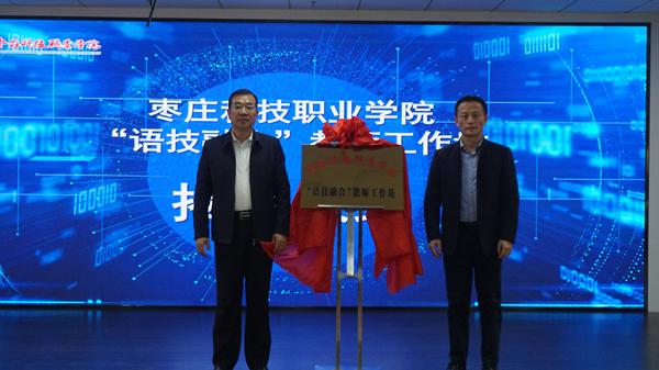 会上举行了“枣庄科技职业学院‘语技’融合教师工作坊”揭牌仪式。王宜建指出,海归教师具有“双语”的优势,有责任和能力把班·墨文化传播出去,把中国先进的职教理念和成果分享出去。“语技”融合教师工作坊设立生逢其时,要大力推进以“语”“技”双能为核心的教师团队建设,在中国-海外职业技术学院及海外“班墨学院”的建设中发挥实践和研究基地的引领作用。