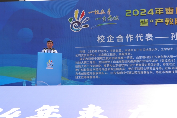 5月17日上午,以“一技在手,一生无忧”为主题的2024年枣庄市职业教育活动周启动仪式暨“产教融合育工匠”技能展示活动在薛城临山广场举行。学校以优秀的教学成果和创新的教育理念,参与了本次职教宣传周的系列活动,展示了学校的教育教学实力和学生的技能风采。党委委员、副院长刘陵东带队参加,机电工程学院、建筑工程学院、学前教育学院的师生参与了展览活动,我校产教融合校企合作企业山东山森数控技术有限公司党支部书记、正高级工程师、高级技师孙强代表发言。