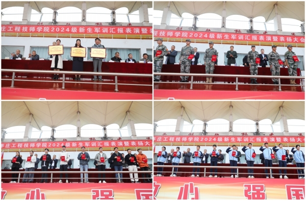 会上,枣庄科技职业学院学生工作处处长、团委书记、武装部部长薛涛宣读了《枣庄工程技师学院关于表扬2024级“军训工作先进集体”“优秀连队”“优秀指导员”“军训标兵”的决定》,与会领导为获奖集体和个人颁发了奖牌和获奖证书。