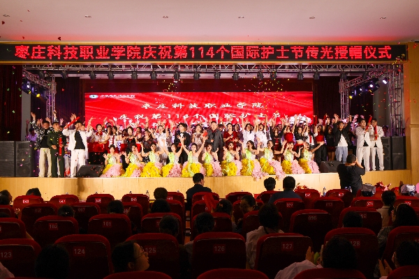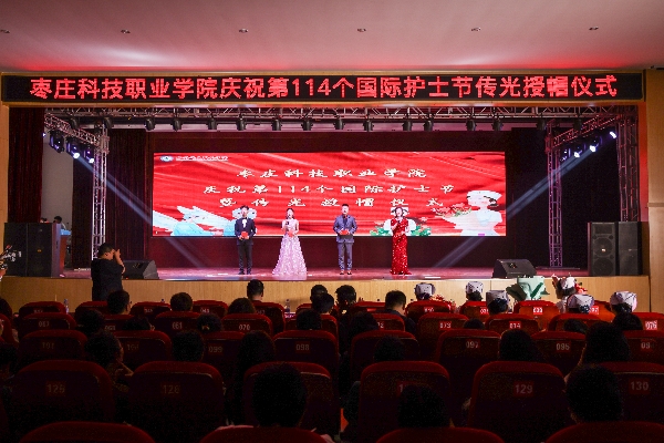 烛光映初心,誓言铸使命。2025年5月9日下午,枣庄科技职业学院在大学生活动中心隆重举行第114个国际护士节传光仪式暨职教宣传周活动。滕州市中心人民医院、滕州市中医医院护理专家及医药卫生学院师生代表齐聚一堂,共同见证这一神圣时刻。学校党委书记谢宝华,党委副书记、院长闵祥寨,党委委员、副院长、工会主席刘陵东,党委委员、宣传部(信息处)部长马西柱,及相关处室、二级学院负责人出席了活动。