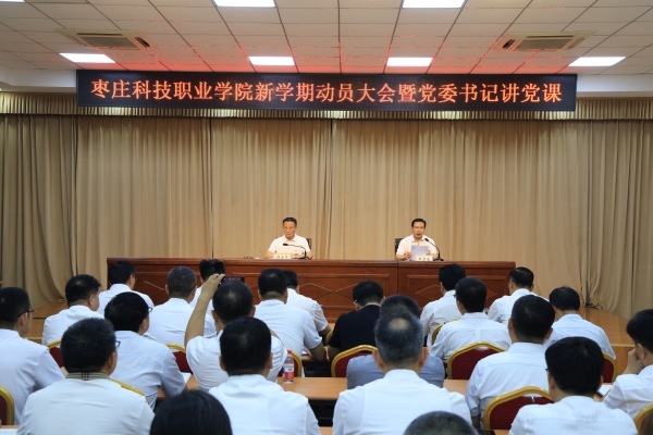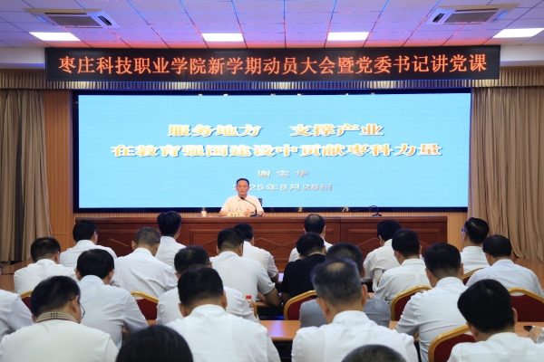 8月28日上午,学校在附楼多功能厅举行新学期动员大会暨党委书记讲党课,深入学习贯彻全国教育大会精神,深刻理解党中央和国务院关于教育强国的安排部署,阶段复盘2025高质量发展提升年工作,动员全校上下,进一步坚定信心、锚定目标、理清思路,奋战新学期,前瞻十五五,跑赢新征程,在教育强国建设中贡献枣科力量。