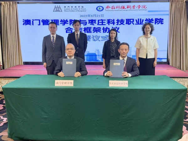 座谈会后,在澳门教育及青年发展局高等教育厅厅长许嘉路、劳工事务局职业培训厅厅长张璋、管院校董会主席莫志伟,以及山东商业职业技术学院党委书记邓迎迎的共同见证下,谢宝华与澳门管理学院院长唐继宗签署合作协议,开启了两校合作的新篇章!随后,还访问了中国与葡语国家商贸合作服务平台综合体,深入了解其运作模式和发展前景。