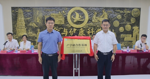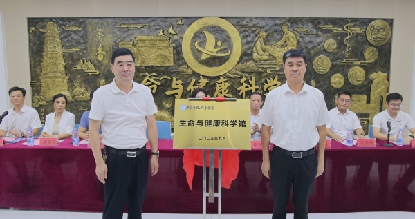随后,在闵祥寨与赵联喜的共同见证下,生命与健康科学馆正式揭牌;王鹏与肖荣国为校企产学研合作基地揭牌。