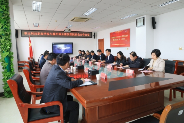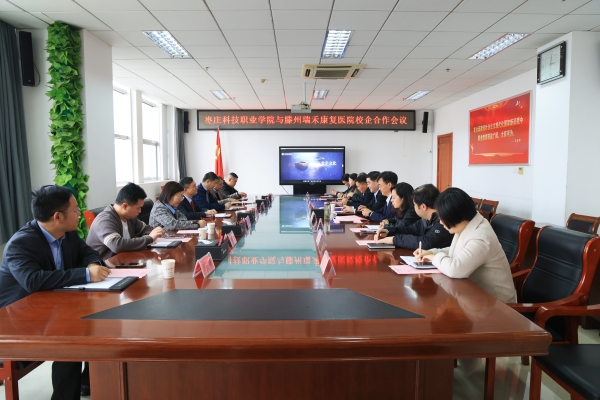 2025年11月14日下午,枣庄科技职业学院与滕州瑞禾康复医院校企合作会议在学校综合楼九楼会议室召开。双方围绕“产教融合、协同育人”主题深入交流,共商康养人才培养新路径。滕州瑞禾康复医院院长胡传松、执行院长史延凯等一行7人到访;枣庄科技职业学院党委副书记、院长闵祥寨,党委委员、副院长刘陵东及医药卫生学院、实训中心、招生就业处等相关负责人参会。会议由刘陵东主持。