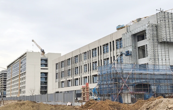 在项目现场,薛登峰一行深入施工一线,先后察看中心广场、实训教学楼、学生公寓、图文信息中心等重点区域建设情况,认真听取项目整体进展汇报,详细询问材料供应保障、安全生产管理、建设资金落实等关键环节工作情况,了解产教融合实训场地规划与配套设施建设推进情况,并与相关单位负责同志深入交流,现场协调解决项目推进过程中存在的困难和问题。