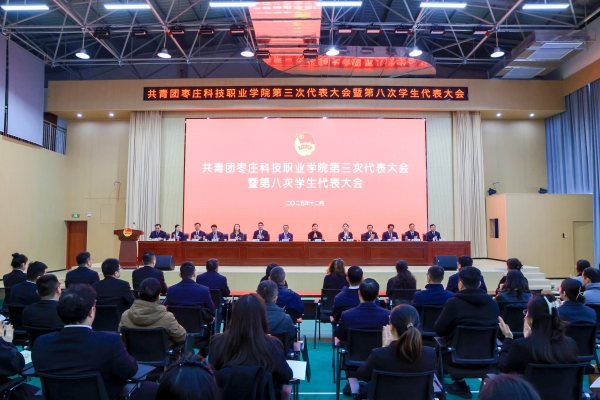 12月24日,共青团枣庄科技职业学院第三次代表大会暨第八次学生代表大会在学术交流中心二楼会议室隆重召开。200名来自各二级学院的正式代表肩负全校团学青年重托,齐聚一堂共商学校共青团和学生工作发展大计,共绘青春建功蓝图。