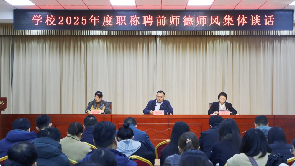 3月11日下午,学校召开2025年度职称聘前师德师风集体谈话会议。150余名2025年度职称评审拟聘人员参加了会议。会议由组织人事部(统战部)副部长胡宝娟主持。