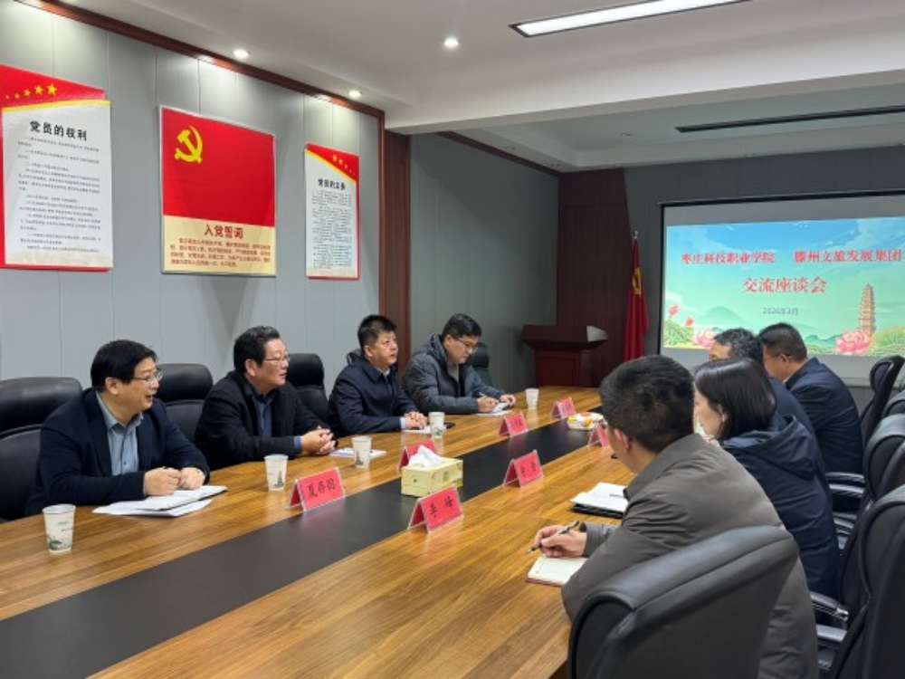 为深入贯彻落实山东省教育厅“职兴百县”职业教育服务县域经济发展工作部署,精准对接滕州“文化与旅游”产业需求,3月13日上午,学校党委委员、副院长张东睿带队,招生就业处、文化与旅游学院相关负责人一行5人赴滕州文旅发展集团开展专题调研交流,滕州文旅发展集团党委书记、董事长满伟,党委副书记、副总经理李丹及相关人员参加座谈。