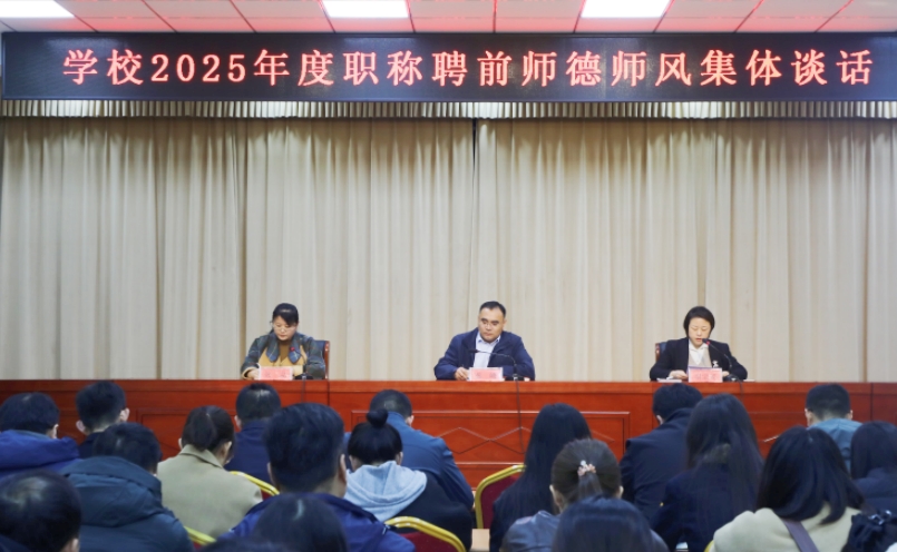 3月11日下午,学校召开2025年度职称聘前师德师风集体谈话会议。150余名2025年度职称评审拟聘人员参加了会议。会议由组织人事部(统战部)副部长胡宝娟主持。