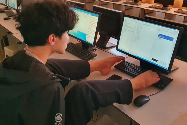 2019年夏季,王学鹏同学考入了枣庄科技职业学院。在学业和成长方面,和所有同学一样,对自己的要求并未降低。在专业学习以外,王学鹏积极参加各种课余活动。他加入了学校大学生记者团,成为一名成员,参与新媒体的制作,他用脚为大家剪视频、做海报,自学了许多软件的使用,表现十分优秀。他说:“虽然有不便,但是我还是想要努力跟大家一样,别人做得到的我也可以。”