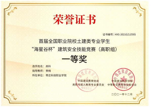 由中国建设教育协会高职与成人教育专业委员会主办的,首届全国职业院校土建类专业学生“海星谷杯”建筑安全技能大赛于12月4日如期举行,我院建筑工程技术和建设工程管理专业教师积极组织学生参加比赛,取得了高职组一等奖一项、二等奖两项的好成绩。